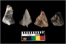 | Description / विवरण | There are n 4 of utilized worked cores. They show multidirectional irregular scar pattern. All of them are tapering on one end and have sharp edges. |