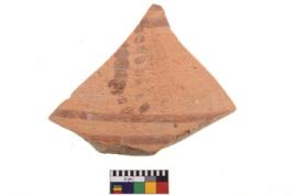 | Description / विवरण | Specimen of potsherd with decorative geometric painting. Type Black on Red Ware . |