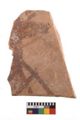 | Description / विवरण | Specimen of potsherd with decorative geometric painting. Type Black on Red Ware . |