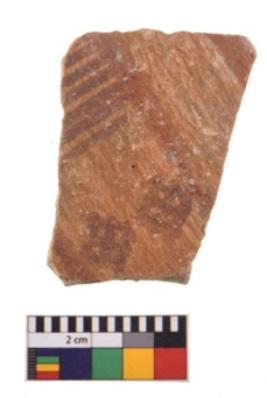 | Description / विवरण | Specimen of potsherd with decorative geometric painting. Type Black on Red Ware . |