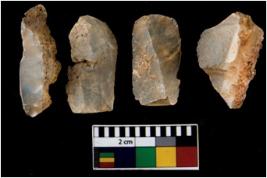 | Description / विवरण | There are n 4 of utilized worked cores. They show multidirectional irregular dominant scar pattern. Two have flat base. |