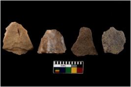 | Description / विवरण | There are n 4 of utilized worked cores. They show multidirectional irregular dominant scar pattern. Three have flat base and all are having blunt edges. |