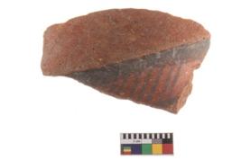 | Description / विवरण | Specimen of potsherd with black decorative geometric painting. |