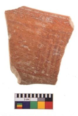 | Description / विवरण | Specimen of potsherd with decorative geometric painting. Type Black on Red Ware . |