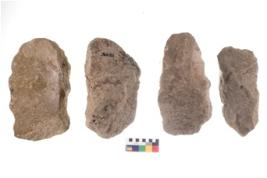 | Description / विवरण | These are n 4 of worked tools. They are tapering at one end and have sharp edges. They have round base and show dominant irregular scar pattern. |