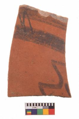 | Description / विवरण | Specimen of potsherd with black decorative painting, Tpre Black on Red Ware . |