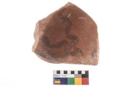 | Description / विवरण | Specimen of potsherd black on red painted pottery. It is fine fabric in sharp contrast with painted design are executed in black pigment. |