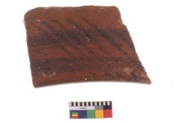 | Description / विवरण | Specimen of potsherd black on red painted pottery. It is fine fabric in sharp contrast with painted design are executed in black pigment. |