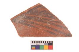 | Description / विवरण | Specimen of potsherd with black decorative linear painting. |