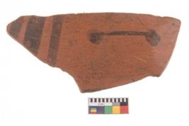 | Description / विवरण | Specimen of potsherd with black decorative geometric painting. |