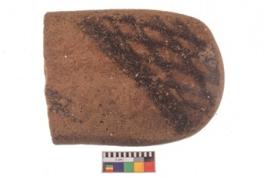 | Description / विवरण | Specimen of potter tool with black decorative geometric Net Pattern painting. |