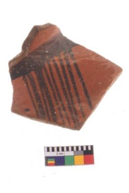 | Description / विवरण | Specimen of potsherd black on red painted pottery. It is fine fabric in sharp contrast with painted design are executed in black pigment. |