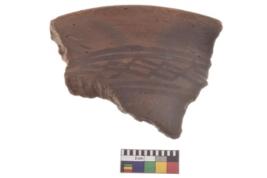 | Description / विवरण | Specimen of black on red ware with decorative geometric flag design painting. |