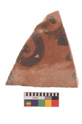 | Description / विवरण | Specimen of potsherd with black decorative painting, Tpre Black on Red Ware . |