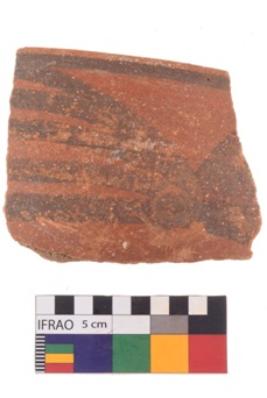 | Description / विवरण | Specimen of potsherd with black decorative linear painting. |