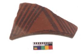 | Description / विवरण | Specimen of potsherd black on red painted pottery. It is fine fabric in sharp contrast with painted design are executed in black pigment. |