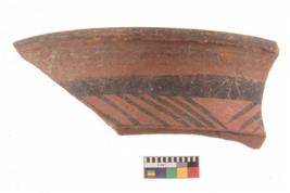 | Description / विवरण | Specimen of potsherd with black decorative geometric painting. |