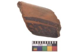 | Description / विवरण | Specimen of black on red ware with decorative geometric flag design painting. |