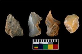 | Description / विवरण | There are n 4 of utilized worked cores. They show multidirectional irregular dominant scar pattern. Three of them are tapering on one end and have sharp edges. |