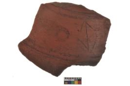 | Description / विवरण | Specimen of red ware with graffiti over the surface. |