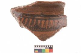 | Description / विवरण | Specimen of potsherd with black decorative geometric painting. |