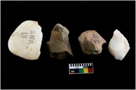 | Description / विवरण | There are n 2 cores, n 1 burin and n 1 chopper; some of them have sharp edges. Ridge marks are present on the core tools. Cores are made of chert whereas burin and chopper is made of quartz. |