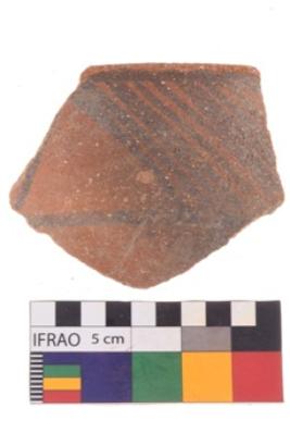 | Description / विवरण | Specimen of potsherd with black decorative geometric painting. |