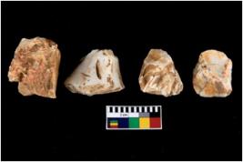 | Description / विवरण | There are n 4 of utilized worked cores. They show multidirectional irregular dominant scar pattern. Three have flat base. |