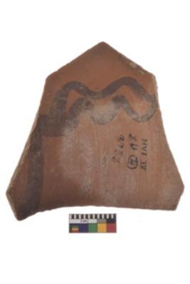 | Description / विवरण | Specimen of black on red ware with decorative geometric two wavy lines painting. |