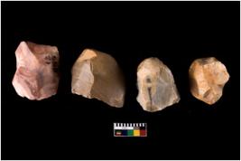 | Description / विवरण | There are n 4 cores; almost of same size. Three of them have flat bases. Prominent retouching is noticed. |