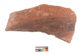 | Description / विवरण | Specimen of potsherd with black decorative geometric painting. |