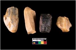 | Description / विवरण | There are n 4 cores; three of chalcedony and one of chert. Crested ridge flakes are visible. Almost all of them are fluted. |
