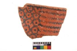 | Description / विवरण | Specimen of potsherd with decorative geometric painting. Type Black on Red Ware . |