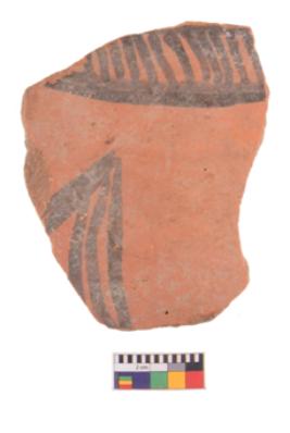 | Description / विवरण | Specimen of potsherd with black decorative geometric painting. |