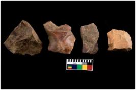 | Description / विवरण | There are n 4 of utilized worked cores. They show multidirectional irregular dominant scar pattern and have flat base. Two are having sharp edges. |