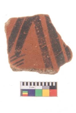 | Description / विवरण | Specimen of potsherd with black decorative geometric painting. |