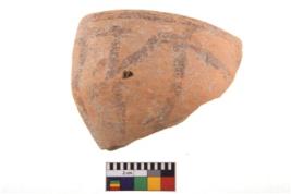 | Description / विवरण | Specimen of potsherd with decorative geometric painting. Type Black on Red Ware . |
