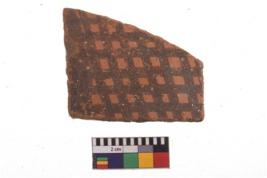 | Description / विवरण | Specimen of potsherd with black decorative geometric Net Pattern painting. |