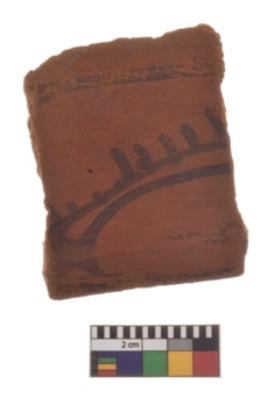 | Description / विवरण | Specimen of black on red ware with decorative geometric double arch with the upper one having short strokes painting. |