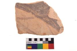| Description / विवरण | Specimen of potsherd with decorative geometric painting. Type Black on Red Ware . |