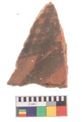 | Description / विवरण | Specimen of potsherd with black decorative geometric painting. |
