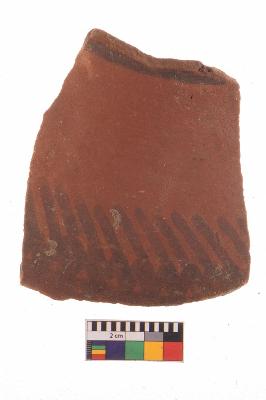 | Description / विवरण | Specimen of potsherd with black decorative painting, Type Black on Red Ware . |
