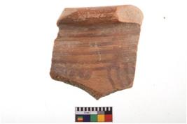 | Description / विवरण | Specimen of potsherd with decorative geometric painting. Type Black on Red Ware . |