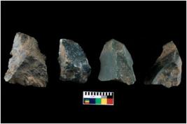 | Description / विवरण | There are n 4 of utilized worked cores. They show multidirectional irregular dominant scar pattern and are tapering at one end. Three are having sharp edges. |