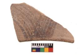 | Description / विवरण | Specimen of potsherd with decorative geometric painting. Type Black on Red Ware . |