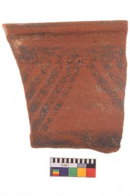 | Description / विवरण | Specimen of potsherd with black decorative geometric Linear painting, Type Black on Red Ware . |
