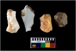 | Description / विवरण | There are n 4 of utilized worked cores. They show multidirectional irregular scar pattern. |