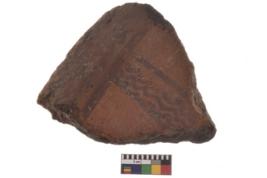 | Description / विवरण | Specimen of black on red ware with decorative geometric vertical wavy lines painting. |
