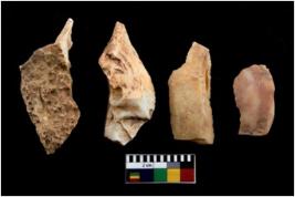 | Description / विवरण | There are n 4 of utilized worked cores. They show multidirectional irregular dominant scar pattern. Three are tapering at one end. |