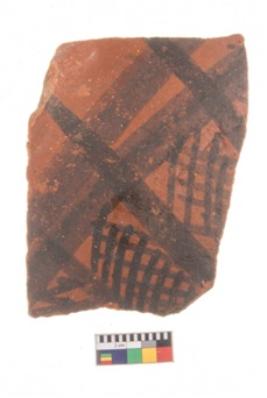| Description / विवरण | Specimen of potsherd with black decorative geometric painting. |